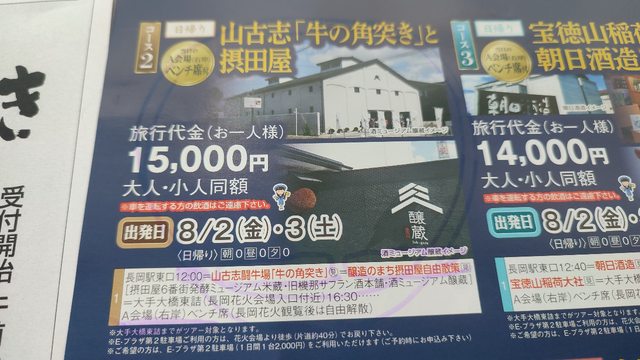 就是看鬥牛場景,然後還有一個酒廠自由散策,最後16:30再回到市區去長岡花火會場入