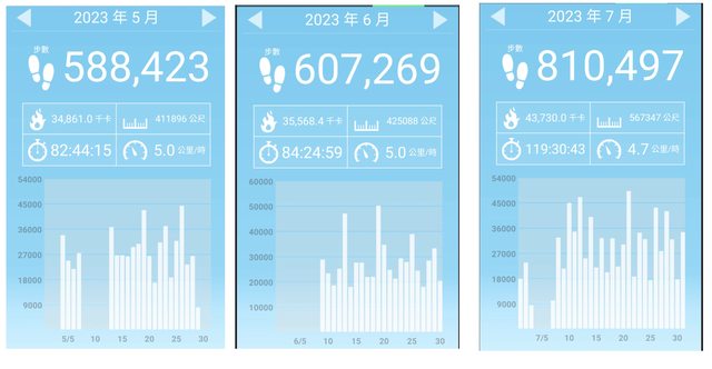 平均大概每天都是2萬步以上, 只有大概不到10天走不到兩萬步
