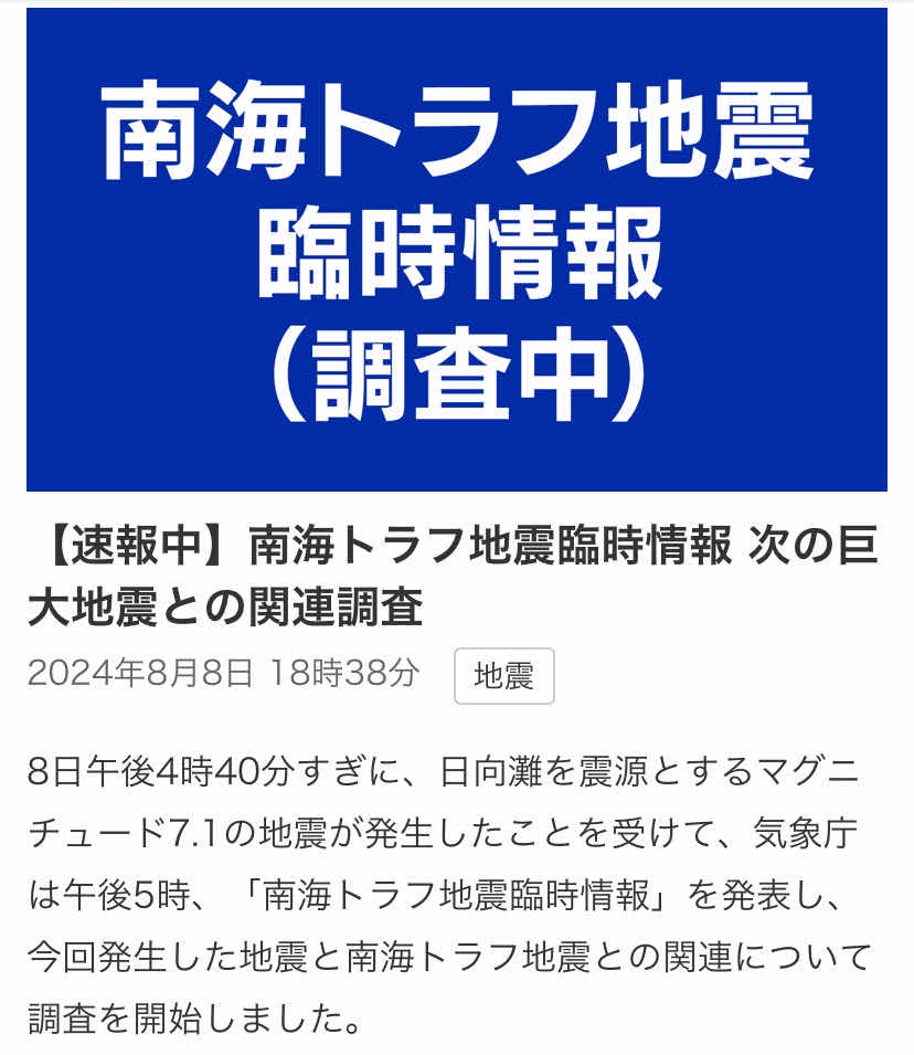 → mtcoat : 日本政府發布資訊 這一週發生南海海槽地震機率很高 08/08 20:56
