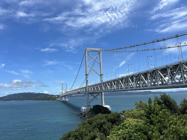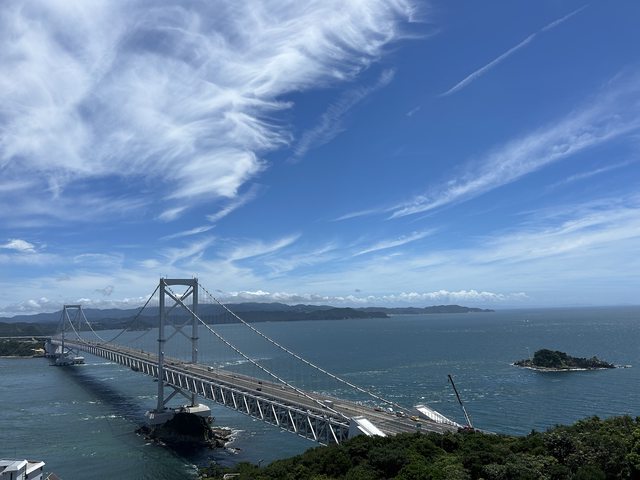 在千疊敷展望台從側邊看鳴門大橋。