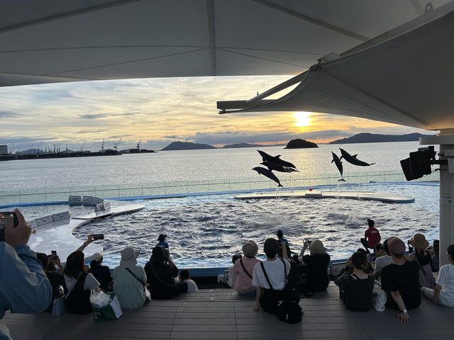 所以能非常近距離觀看,此外在觀看海豚表演時恰逢夕陽西落,相互輝映出絕美的景色。