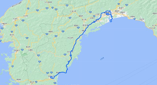 從四萬十市到高知市的前半程只有平面國道能走,要到後半程才會有高規格國道和高速