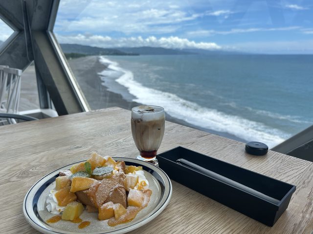 重點應該是美麗的海景,做在二樓的窗邊席,邊吃鬆餅邊欣賞大海,好不愜意。
