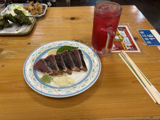 後,再沾上鹽,非常美味,來高知一定要品嘗當地的鰹魚料理。