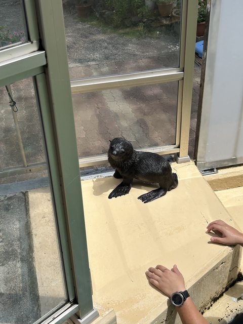 去的時候運氣很好,遇到飼育員要帶小海豹出來練習游泳,不想下水,在那邊逃離水池