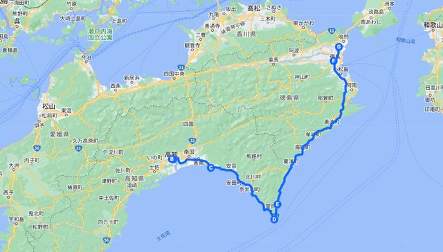 實際的路程如下,繞了四國一周