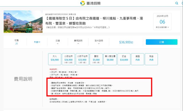 -團費不含全程領隊、導遊、司機服務費(依日本慣例Ntd.300元/每人,每天)。