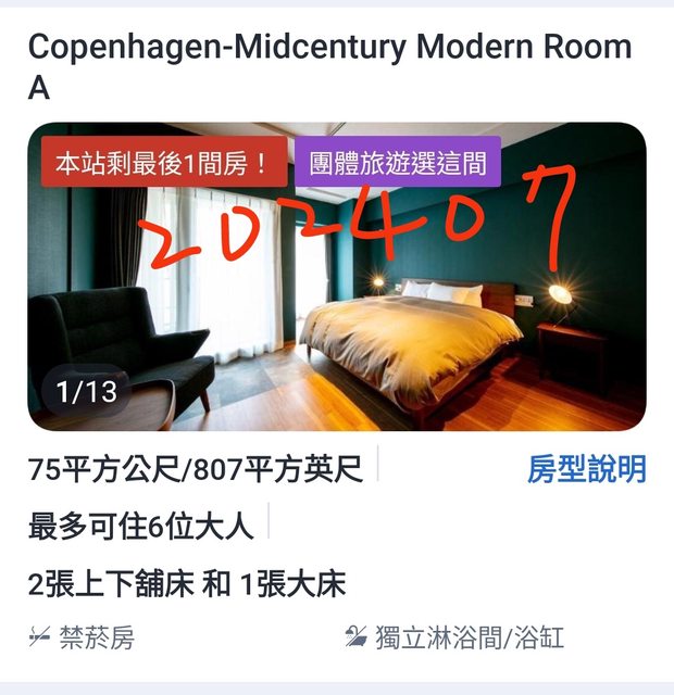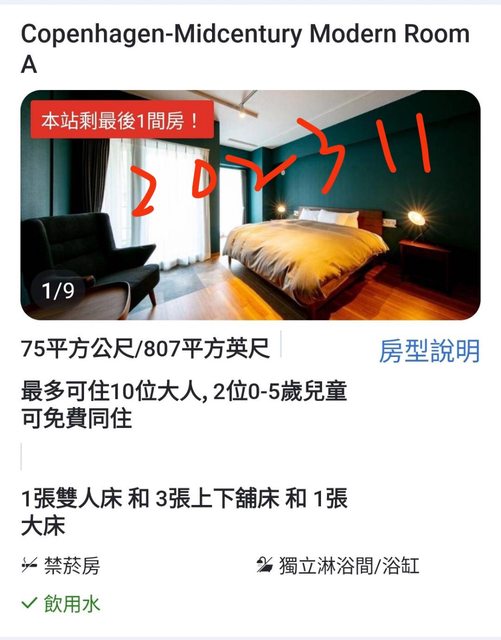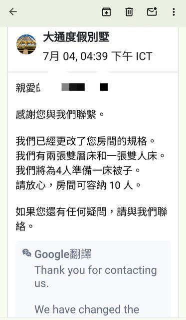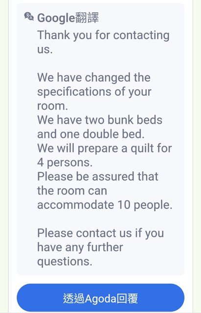 今年7月出發前確認住宿,赫然發現床型從一張雙人床一張大床三張上下舖變成一張大床