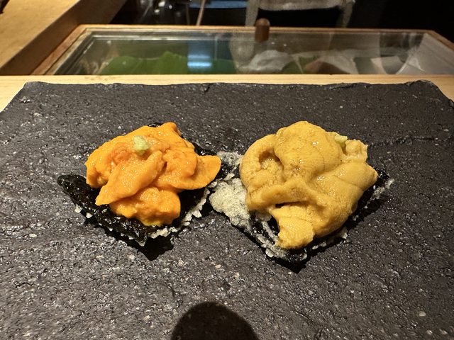 炸海苔和兩種不同海膽 一個濃郁一個清爽