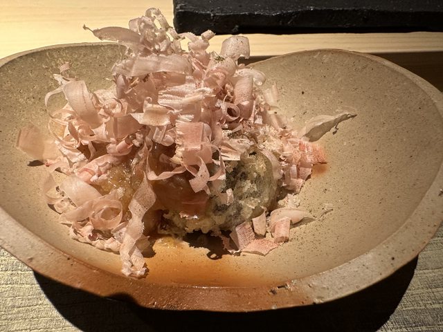 炸茄子和高湯凍+現削柴魚 覺得高湯凍比較沒必要