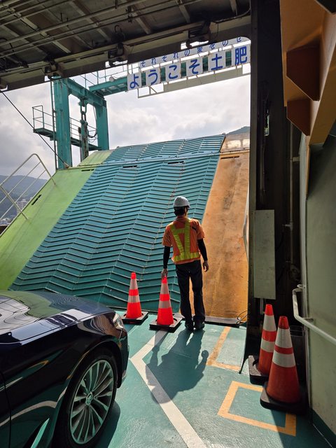 這條航線是日本唯一的海上縣道「223號海上公路」,開車上船的人不少