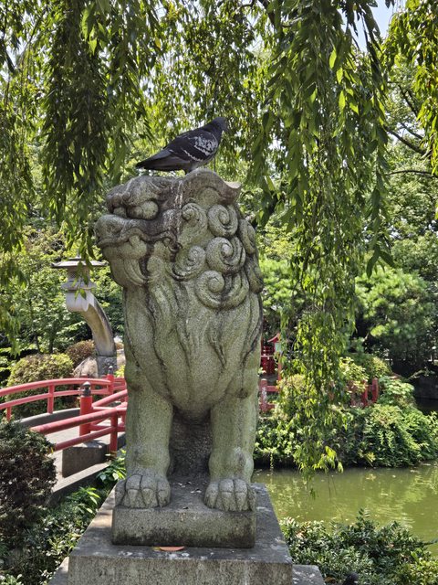 一直以為神社應該烏鴉比較多,結果這邊反而鴿子特別多,遊客餵魚還會跟著搶食