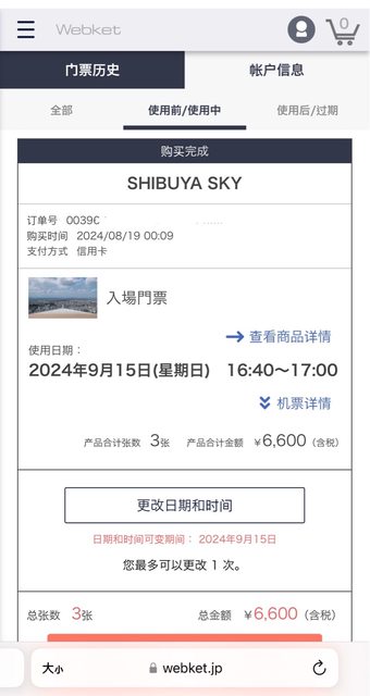 1. 讓售品項:9/15 Shibuyasky 門票(16:40-17:00入場)