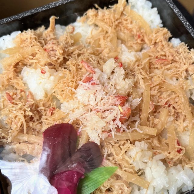 剝散的蟹肉與筍絲,模型比實體豐富許多,蟹肉及竹筍的甜味各有特色,雖然不難吃但總