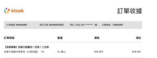 1. 讓售品項:京都大阪觀光乘車券(大阪地鐵)1日券*3張