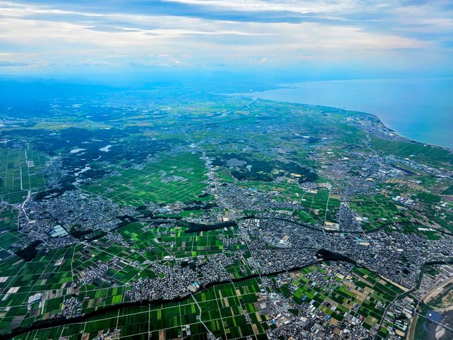 名古屋中部國際機場建在伊勢灣的人工島上,所以我們是穿過整個伊勢灣從機場南端的36