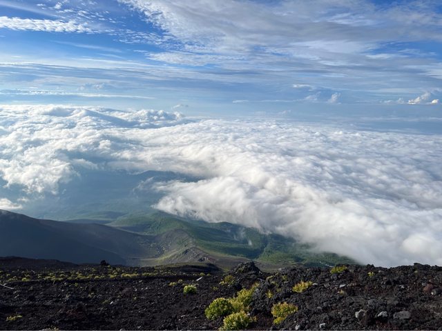 早上雖然有點雲層,還是很幸運的看到御來光,稍作準備,就下山了。下山一路的雲
