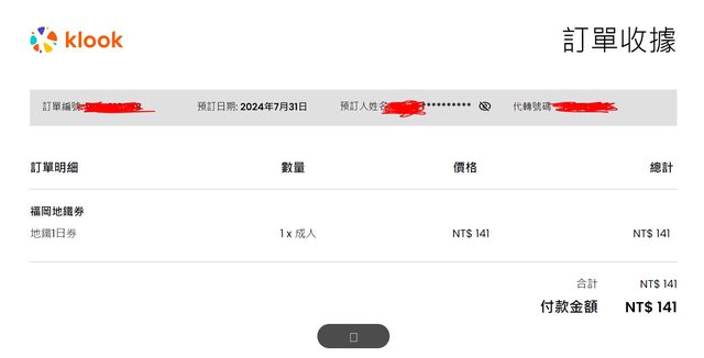 1. 讓售品項:福岡地鐵一日券 兌換期限至10/29