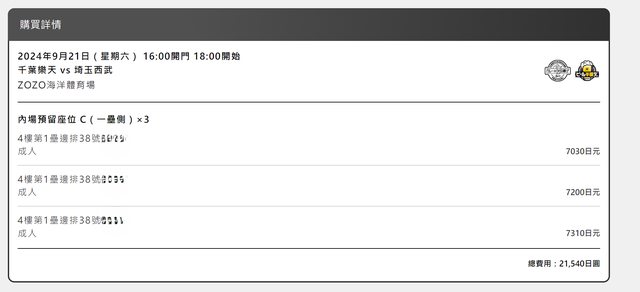 標題[讓售] 9/21 千葉羅德vs西武獅