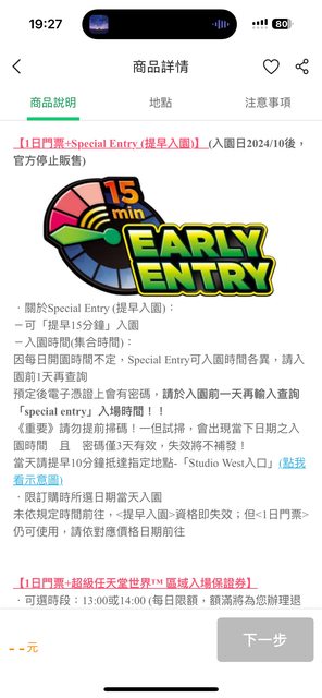 【1日門票+Special Entry (提早入園)】 (入園日2024/10後,官方停止販售)