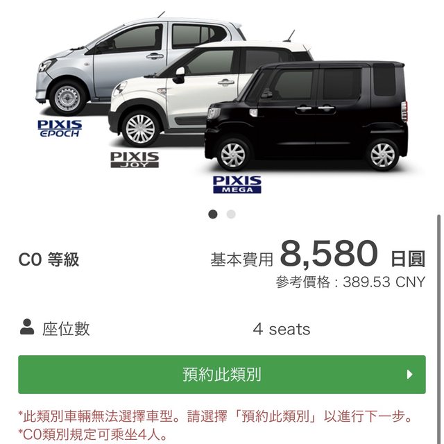 Q1:因為沒行李箱,想問下列選手哪個比較合適?有點想租K-car一來可愛二來去遙拜所山路比較小,但不知道會不會太擠,還是就租一般轎車就好