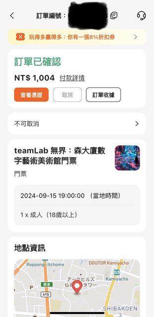 9/15 19:00(當地時間)teamLab 無界:森大廈數字藝術美術館門票, 1張