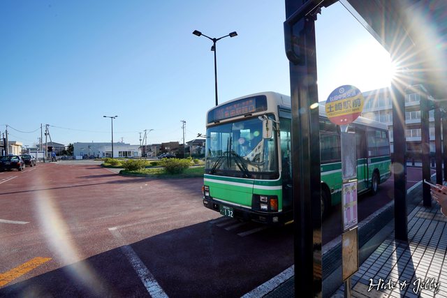 從土崎駅前往秋田城的巴士就位於車站外唯一的巴士站牌,搭乘「秋田中央交通巴士,