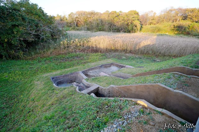 外郭東門的東側,就是「古代水洗廁所」復元的位置,我們第一次看到古城的復元建築物