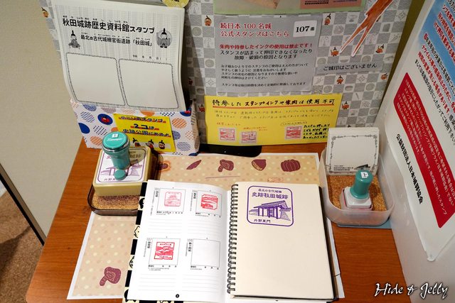 入內後,依照櫃臺人員的指示,在受付櫃台裏側,找到了秋田城的印章,印章被資料館照