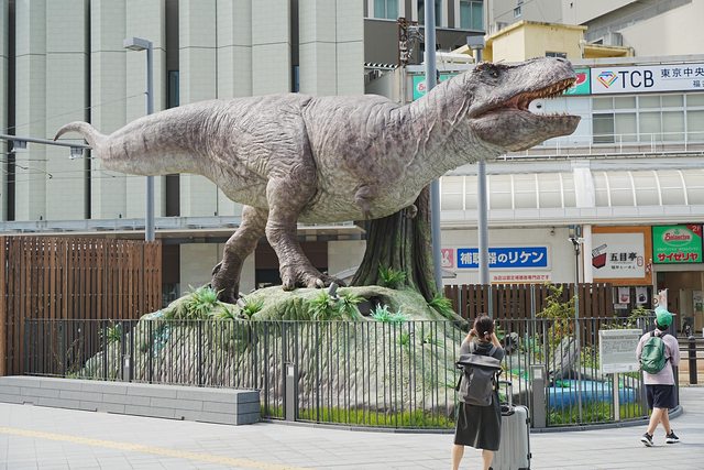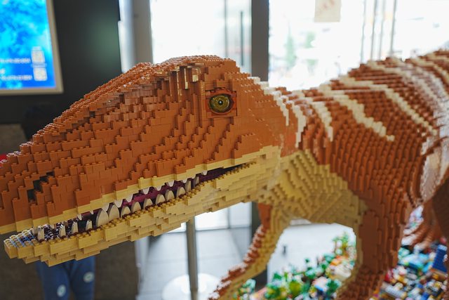 接著再穿越車站,走到西口廣場,門口處還放了一尊樂高恐龍,說是電視冠軍王的樂高冠