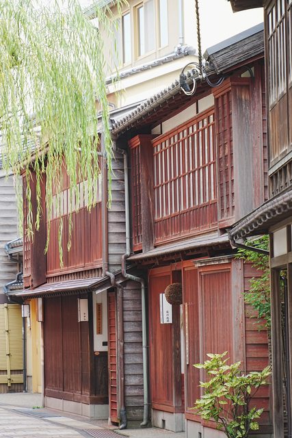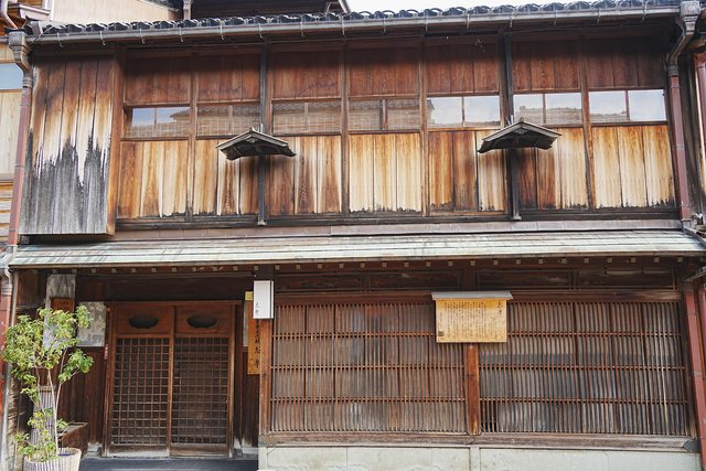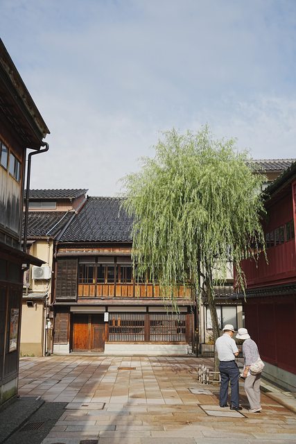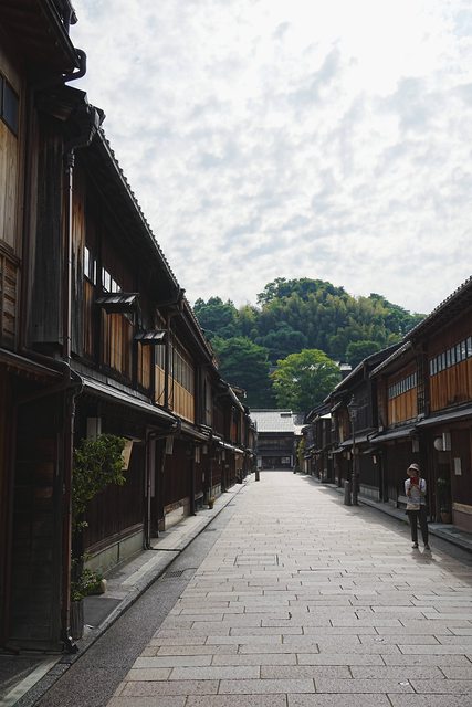東茶屋街基本上就是保留老建築群的散步街道,此時才七點多,沿途店家都大門緊閉