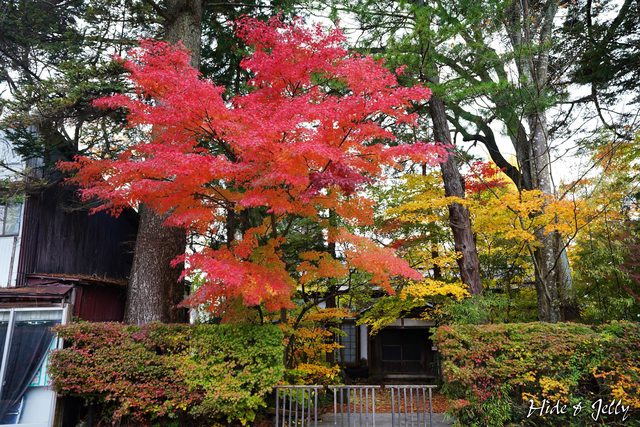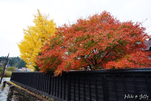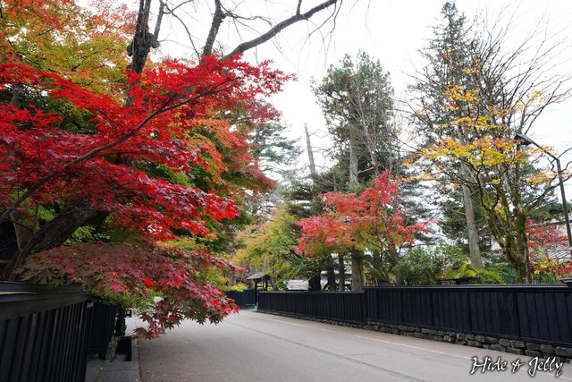 圍牆邊的楓葉,各種顏色的漸層,角館的紅葉季真的看幾次都不膩。