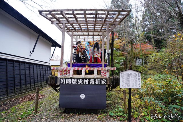 庭園內還放著一台角館祭的山車,主題是「蜘蛛與拍子舞」,張牙舞爪的女郎蜘蛛之精,