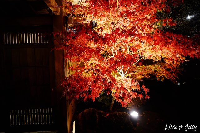 上,雖然還沒有完全轉紅,但打著燈光閃耀奪目,搭配地燈,這根本京都啊!(這句話真