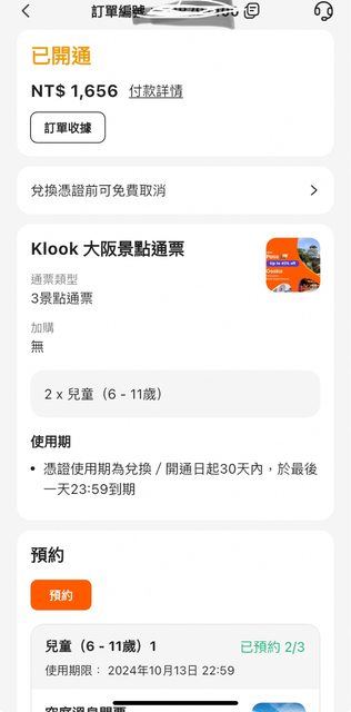 6. 任何記名票券 :非記名,需預約,klook 門票