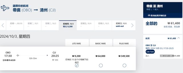 標題[資訊] 可依航空清州-帶廣10月包機網路預訂