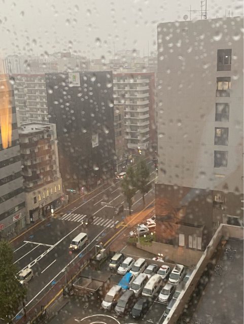 ,然後到了飯店後開始下雷雨???