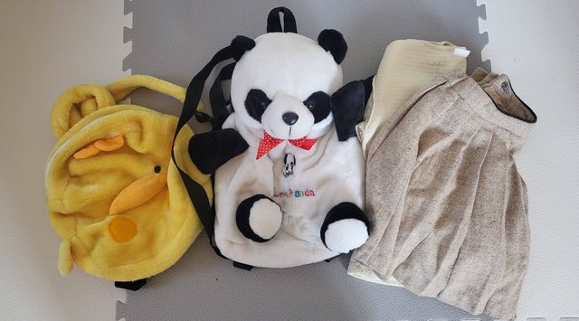 兒童熊貓背包內裡有彩色筆痕跡,黃色小鴨背包少一顆眼睛,衣物粗穿,高標者請繞道。