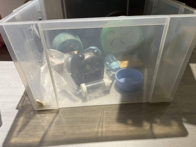 物品名稱:倉鼠的飼料以及收納箱和其他用具(希望能全帶走)