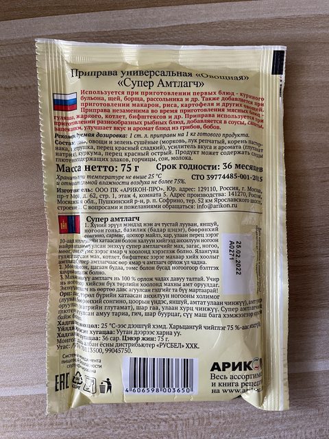 1.未拆封蔬菜調味鹽75克(蒙古國購入,製造日期2022.02.25,保存期限3年)