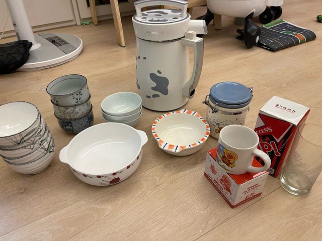 1.物品名稱:全新的碗 杯子(但有灰塵)及二手豆漿研磨機(很久沒用不知道還能用嗎