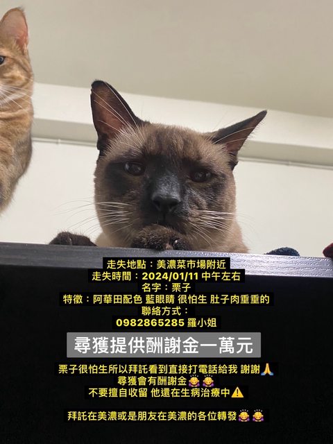 標題[協尋]美濃貓咪走失