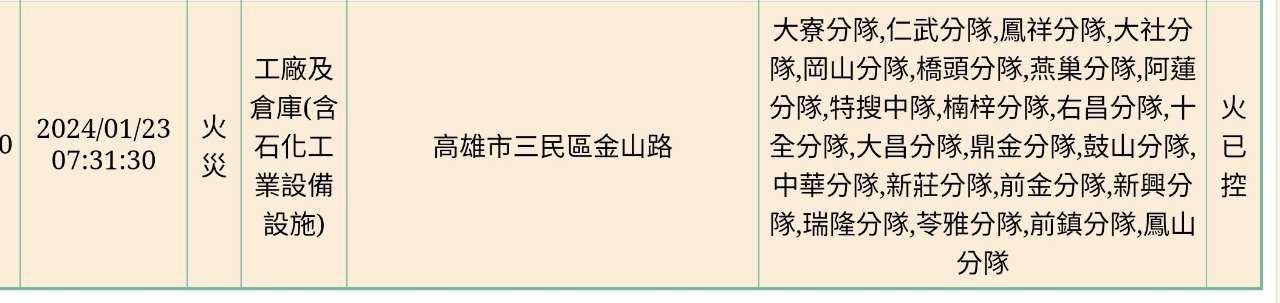 推 jou705 : 7:31:30 火災 一般(集合)住宅 高雄市三民區金山路01/23 08:19