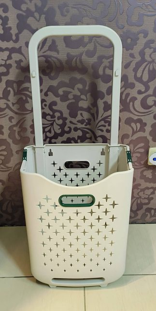 家裡多買了一台推拉置物車,本想買菜時使用,也可用來收洗衣機衣服,到房間