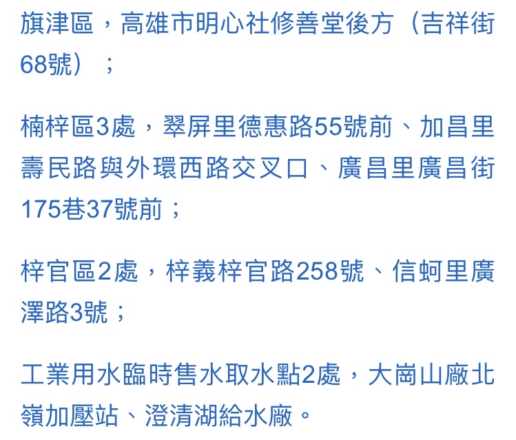 → bailan5566 : 前面貼那個臨時取水點,都是之前預計停水範圍區的 01/29 16:28