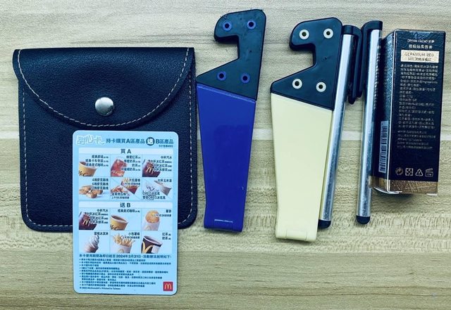 皮質錢包、手機架、電容筆2支、
