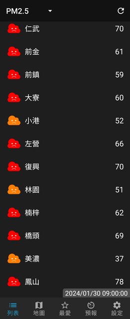 → sls090 : 前幾天這麼霧結果只有20-30。我已經開始不相信這些 01/31 08:11