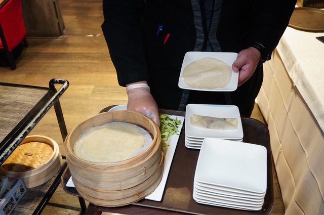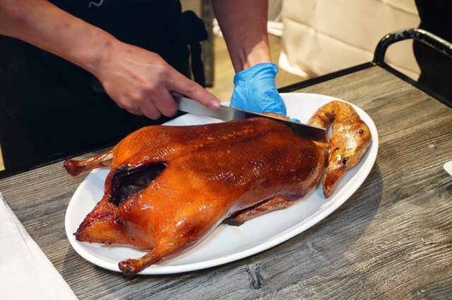 片皮鴨直接由服務人員在包廂裡面現切現片~