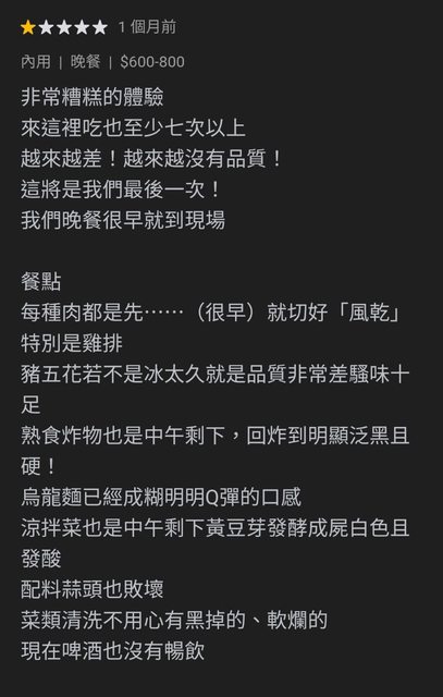 推 togg : 只看google評論的話不準,現在9成店家都按五星送優 02/03 12:03