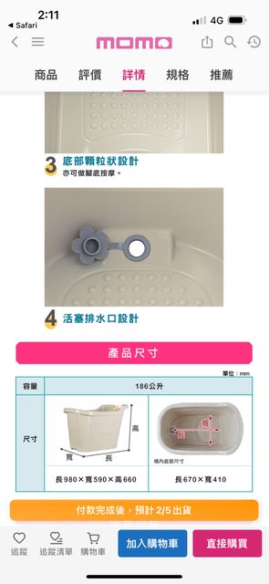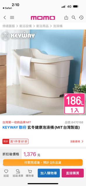 物品名稱:KEYWAY泡澡桶186L(98公分*59公分*66公分)